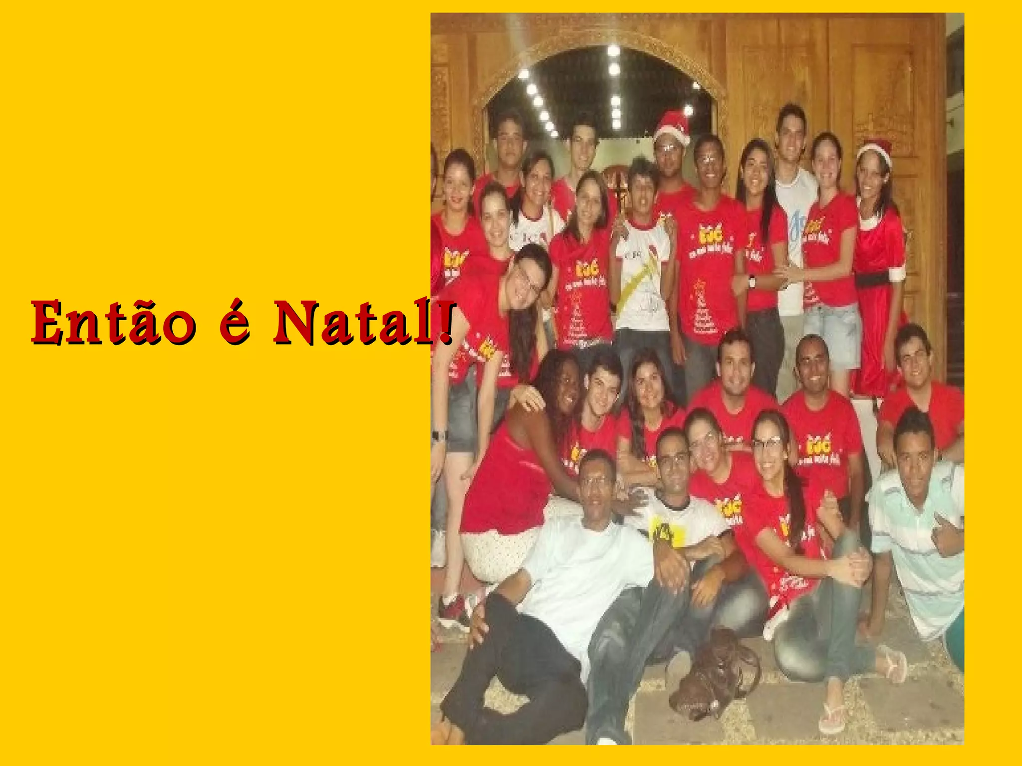 O documento celebra o Natal e o trabalho do EJC (Escoteiros de Jesus Cristo) em revestir-se de amor e vestir-se de vermelho para enxugar lágrimas, fazer brotar sorrisos e transformar o choro em risos. Parabeniza os Jovens de Cristo e Jovens de Lourdes por caminharem no compasso da fraternidade e serem a presença de Deus.