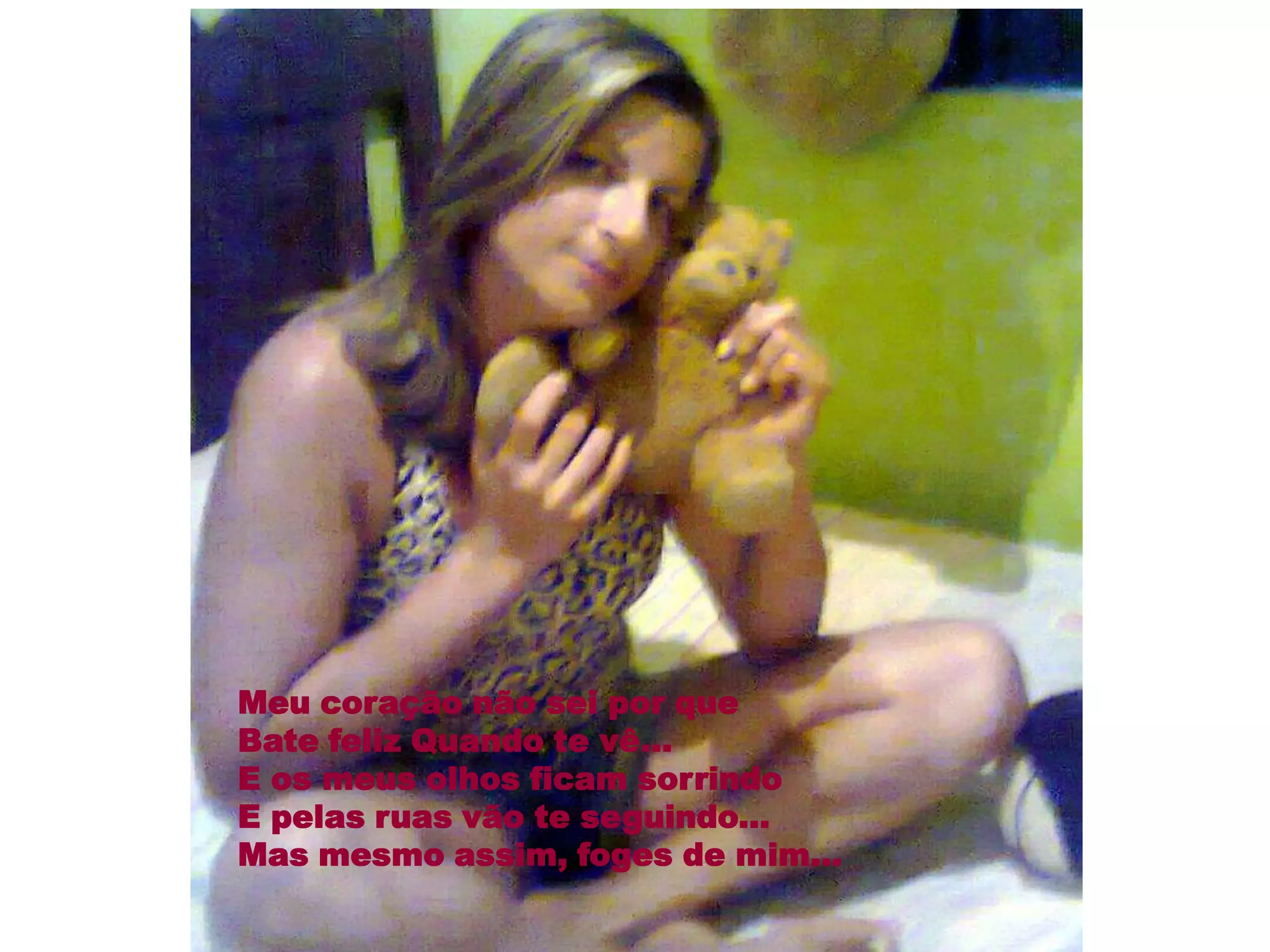 O poema descreve os sentimentos de um homem apaixonado por uma mulher que foge dele. Ele fica feliz quando a vê, mas ela sempre escapa. Ele a convida para sentirem a paixão um pelo outro através de um beijo, para que ele possa finalmente ser feliz.