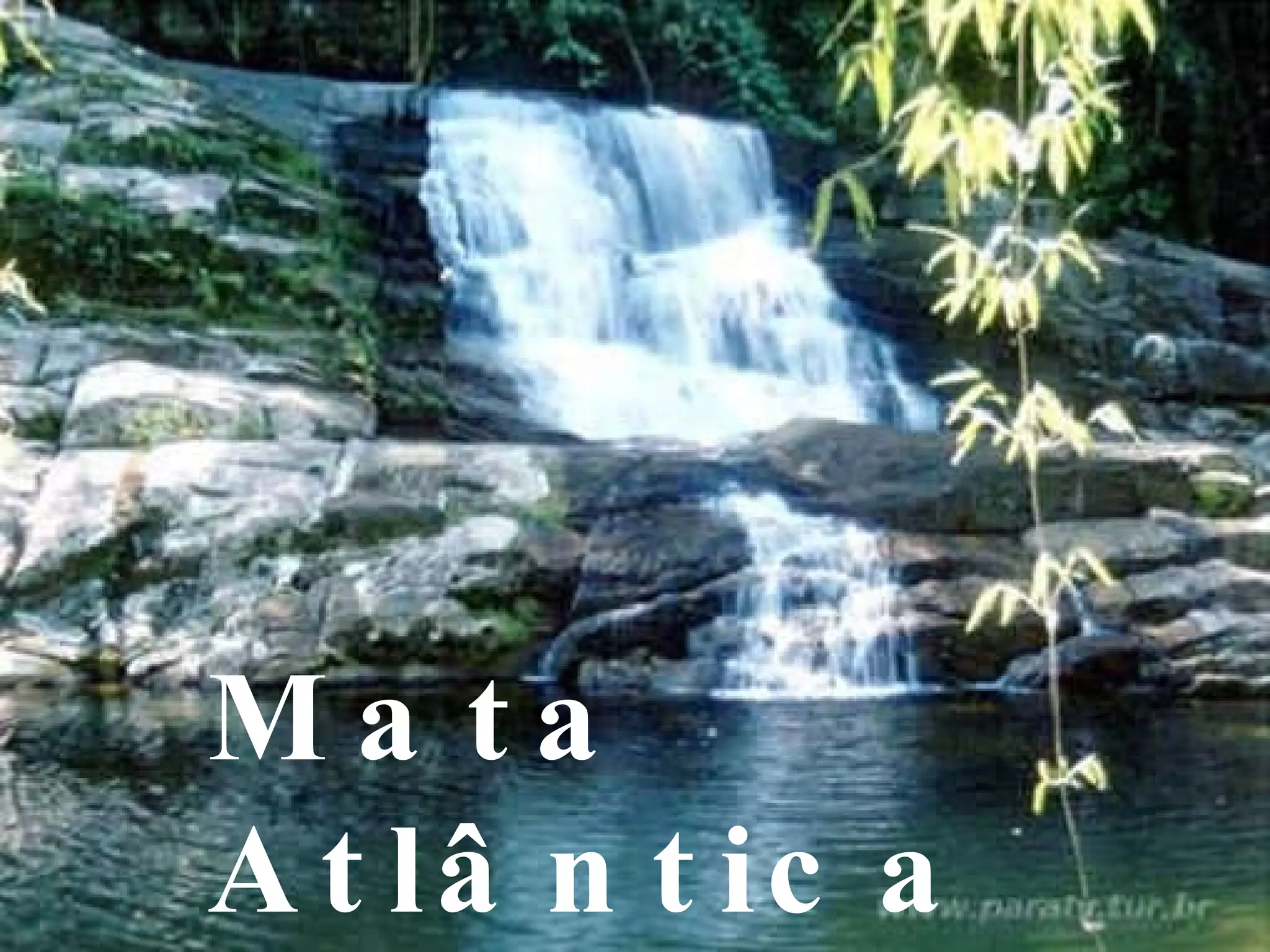 A Mata Atlântica é uma floresta tropical localizada no litoral brasileiro que abriga grande biodiversidade, porém está em processo de extinção devido à especulação imobiliária, desmatamento ilegal e poluição ambiental desde a chegada dos portugueses ao Brasil.