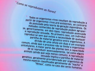O documento lista flores como um tópico e inclui uma imagem de flores. Foi produzido por Patrícia Machado da 6a série para uma tarefa escolar.