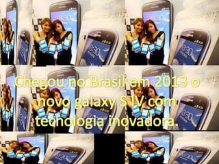 O documento apresenta o Samsung Galaxy S4, descrevendo seus recursos como câmera de 13 megapixels, tela HD de 5 polegadas, 2GB de memória RAM e processador octa-core para simplificar a vida do usuário e valorizar relacionamentos por meio de conexões com amigos e família.