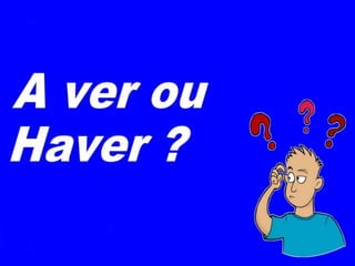 O documento explica a diferença entre as expressões "haver" e "a ver" em português. Enquanto "haver" se refere a algo que existe ou acontece, "a ver" é usado quando não há relação ou semelhança com algo. O documento recomenda usar "a ver" para dizer que algo não tem relação, e "haver" para quando o sentido se refere a algo a receber.
