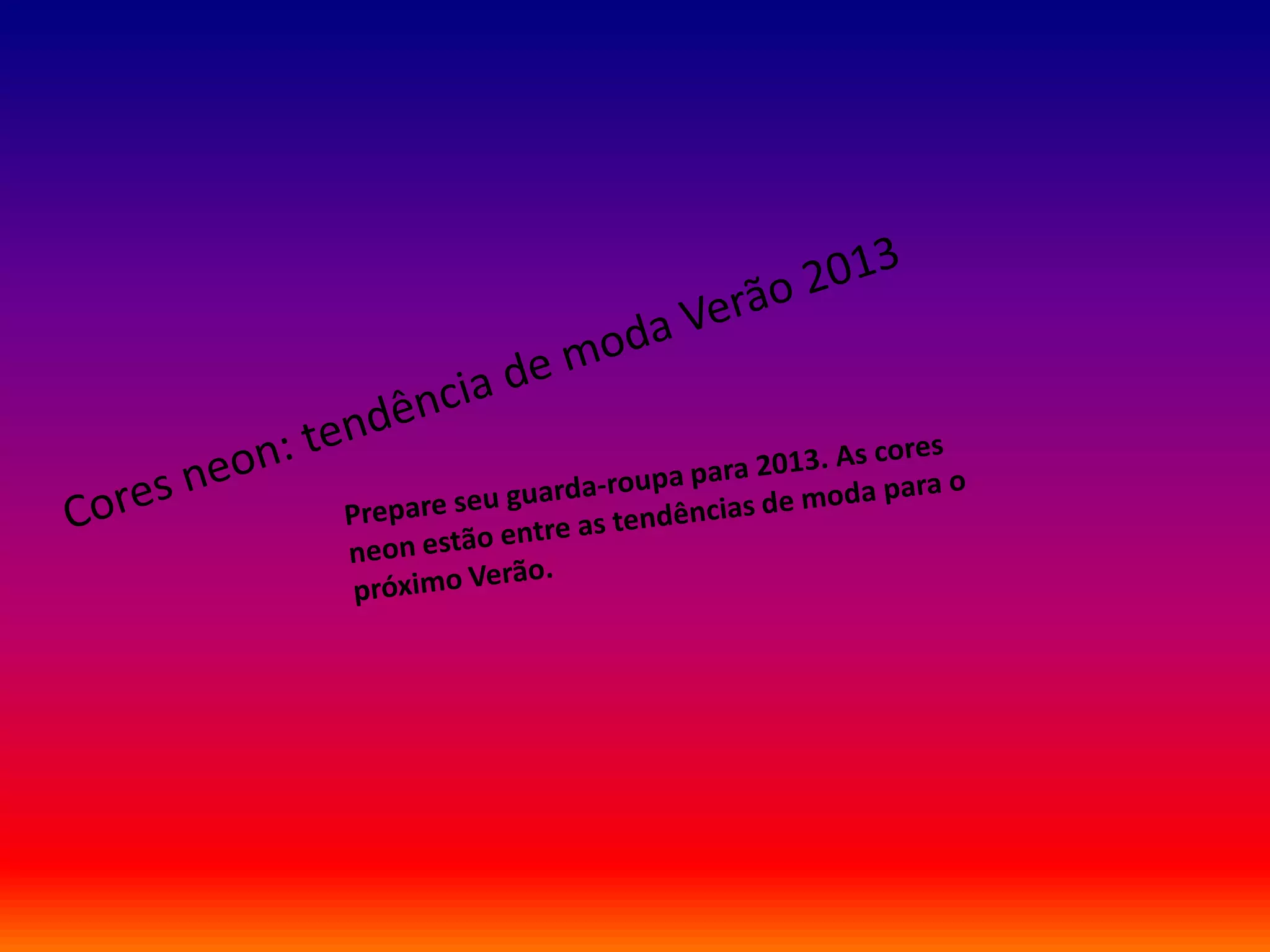 1) As cores neon continuarão sendo tendência para o verão de 2013, especialmente em biquínis.