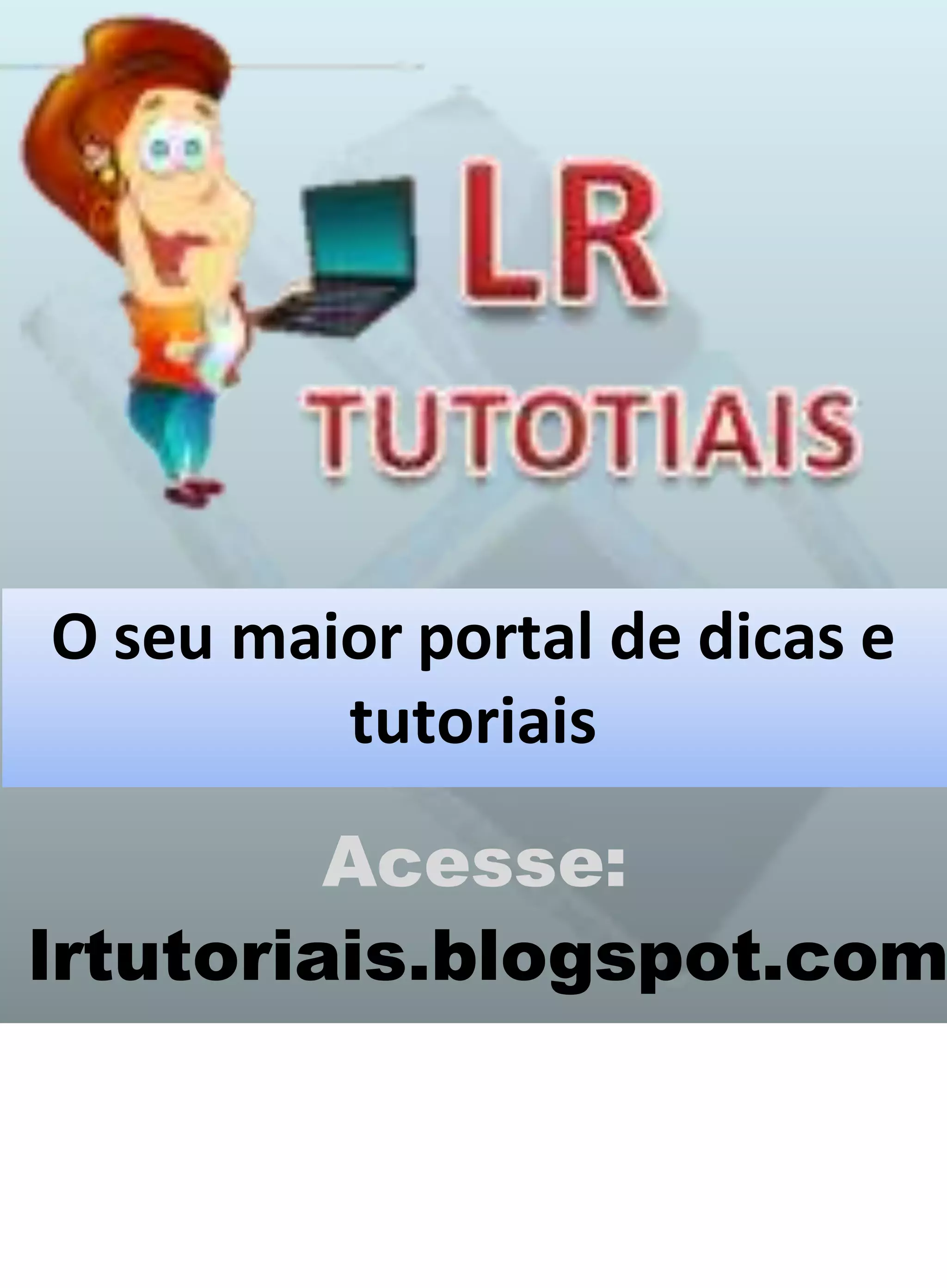 O documento promove um blog com dicas e tutoriais, fornecendo seu endereço três vezes para que os leitores o acessem e encontrem conteúdo útil.