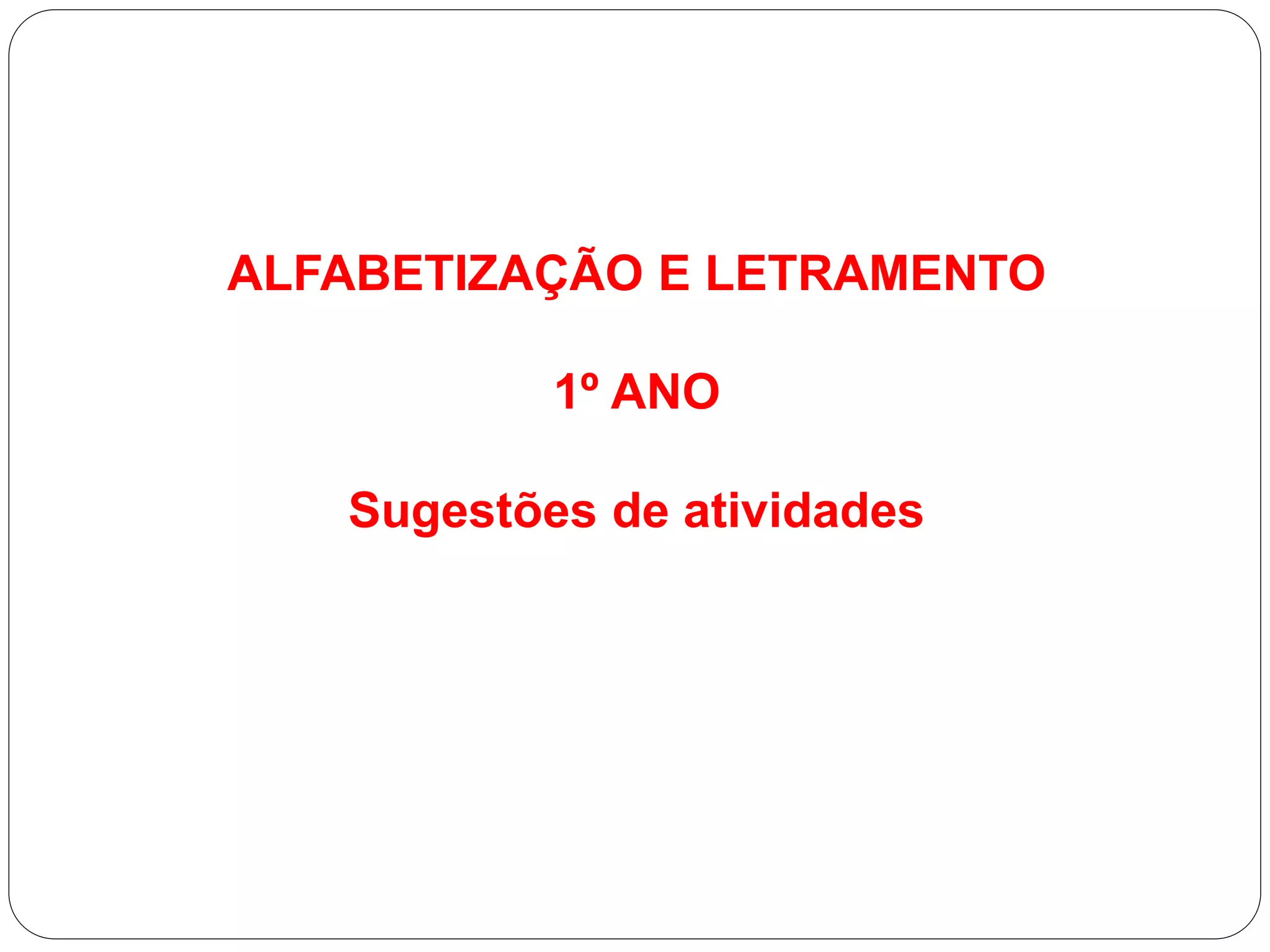 O documento fornece sugestões de atividades de alfabetização para o 1o ano contemplando a literatura infantil, como explorar a capa de livros, montar palavras com alfabeto móvel, jogos de rimas e adivinhação, exercícios de escrita e leitura de números.