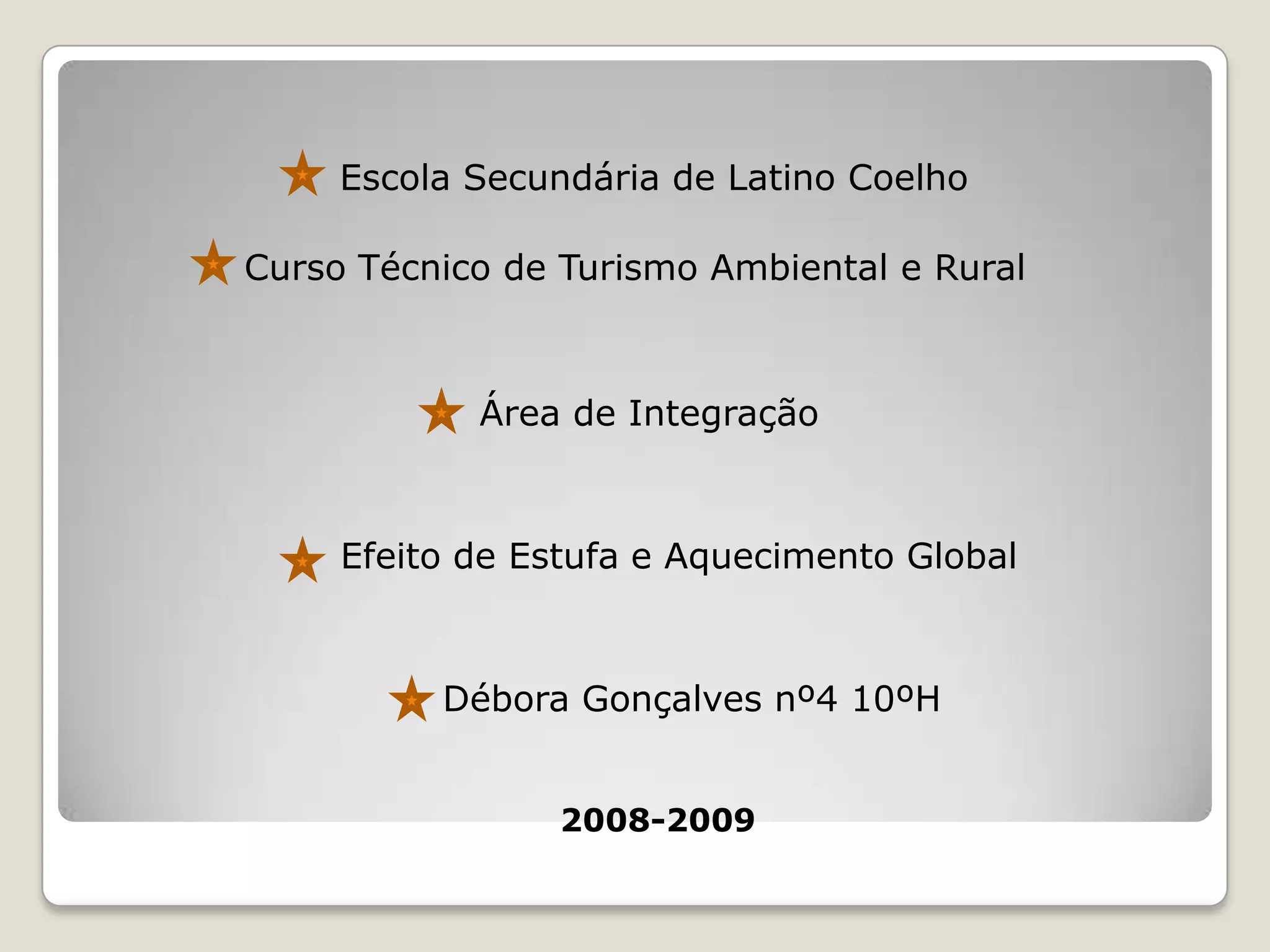 O documento discute o efeito estufa e o aquecimento global. Explica que o efeito estufa mantém a temperatura da Terra retendo a radiação infravermelha, mas as atividades humanas aumentaram os gases causadores, levando ao aquecimento global. O aquecimento global trará consequências como a elevação do nível do mar e mudanças climáticas, ameaçando vidas humanas.