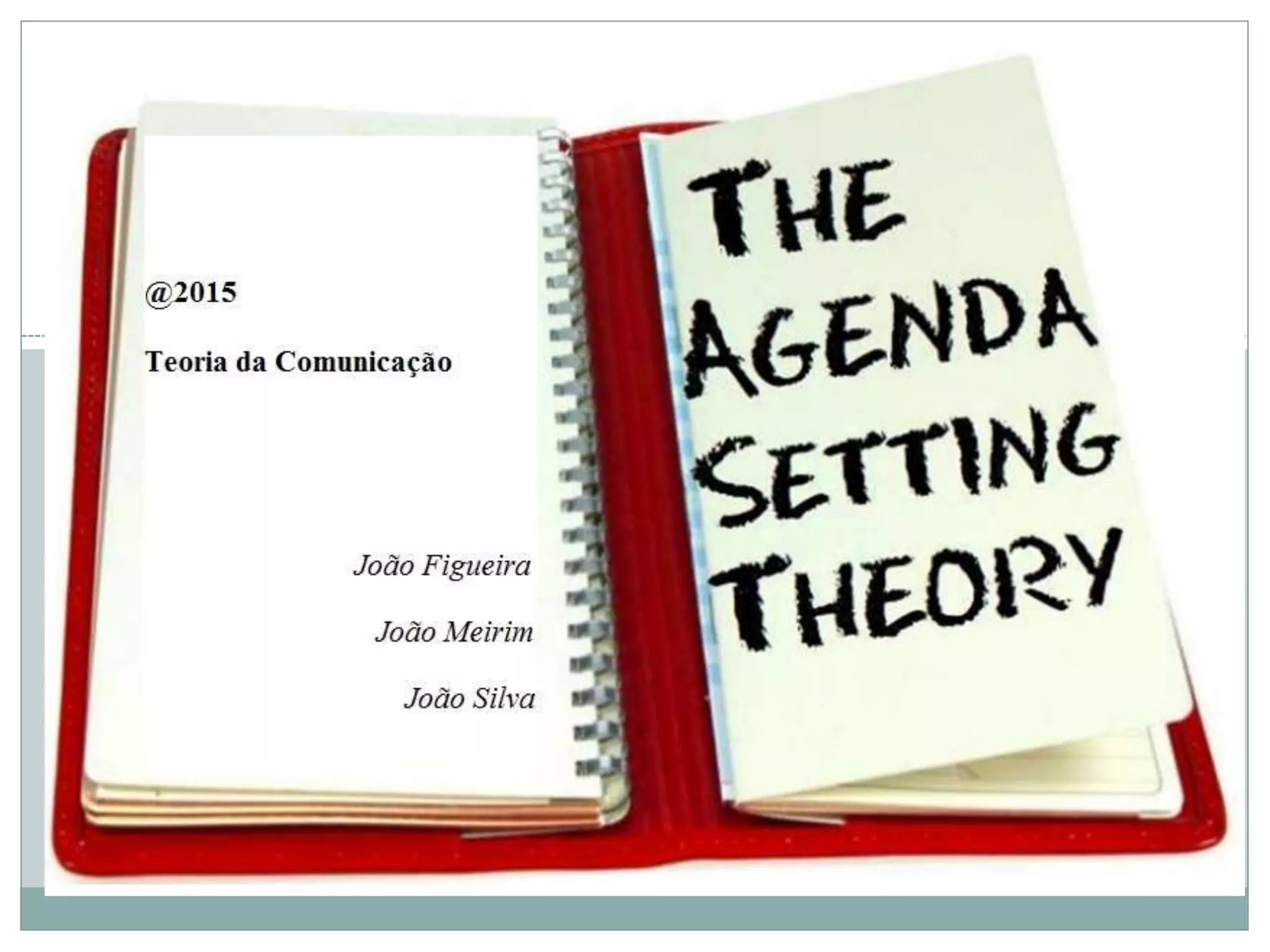 A Teoria do Agenda Setting descreve como os meios de comunicação determinam os temas relevantes para o público ao destacar determinados assuntos em sua cobertura. A teoria sugere que quanto maior a cobertura de um tema pelos meios, maior a percepção pública de sua importância. A função do Agenda Setting ocorre em três níveis: agenda mediática, agenda pública e agenda política.
