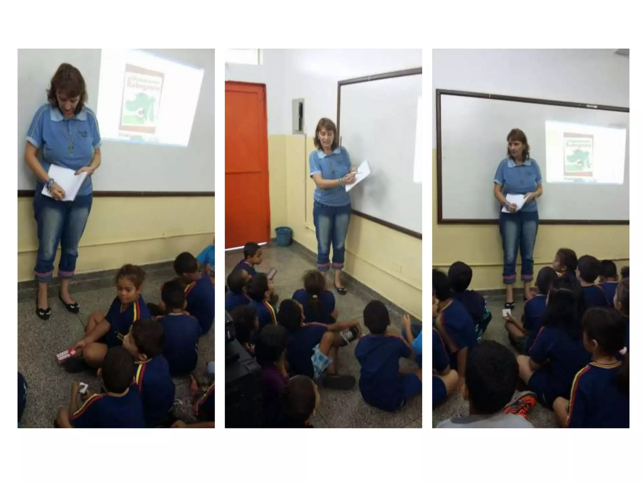 Projeto Dinossauros - Produção de Texto Coletiva. A Professora Ester Eloisa Scholz, fez a revisão e trabalhou na oralidade a história "O Dinossauro Rabugento" com seus alunos do 1° ano A, na sala de informática. A partir dessa conversa informal, a professora como escriba, fizeram o reconto do texto com ilustrações no paint. Apoio CPSTEC Iara Gomes - EmIrmã Irma Zorzi.