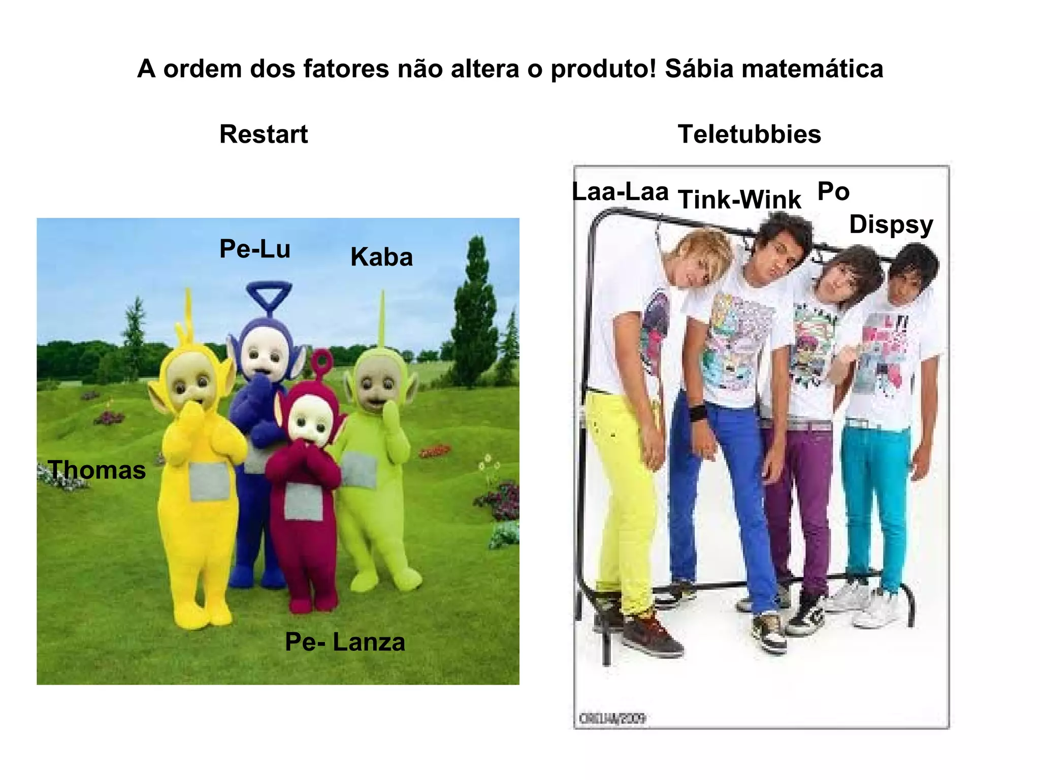 O documento lista os nomes dos personagens principais da série infantil Teletubbies: Tinky Winky, Dipsy, Laa-Laa e Po, bem como o nome da série "Teletubbies".
