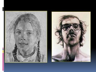 O hiper-realismo surgiu nos EUA nos anos 60 em rejeição ao Expressionismo Abstrato e Minimalismo, procurando retratar a realidade com grande precisão de detalhes utilizando fotografia. Expandiu-se para a Europa nos anos 70, influenciando artistas na Inglaterra e Alemanha. Artistas hiper-realistas como Chuck Close e Richard Estes usam técnicas fotográficas para criar pinturas extremamente realistas, enquanto escultores como Ron Mueck e John de Andrea fazem esculturas quase indistinguíveis de human