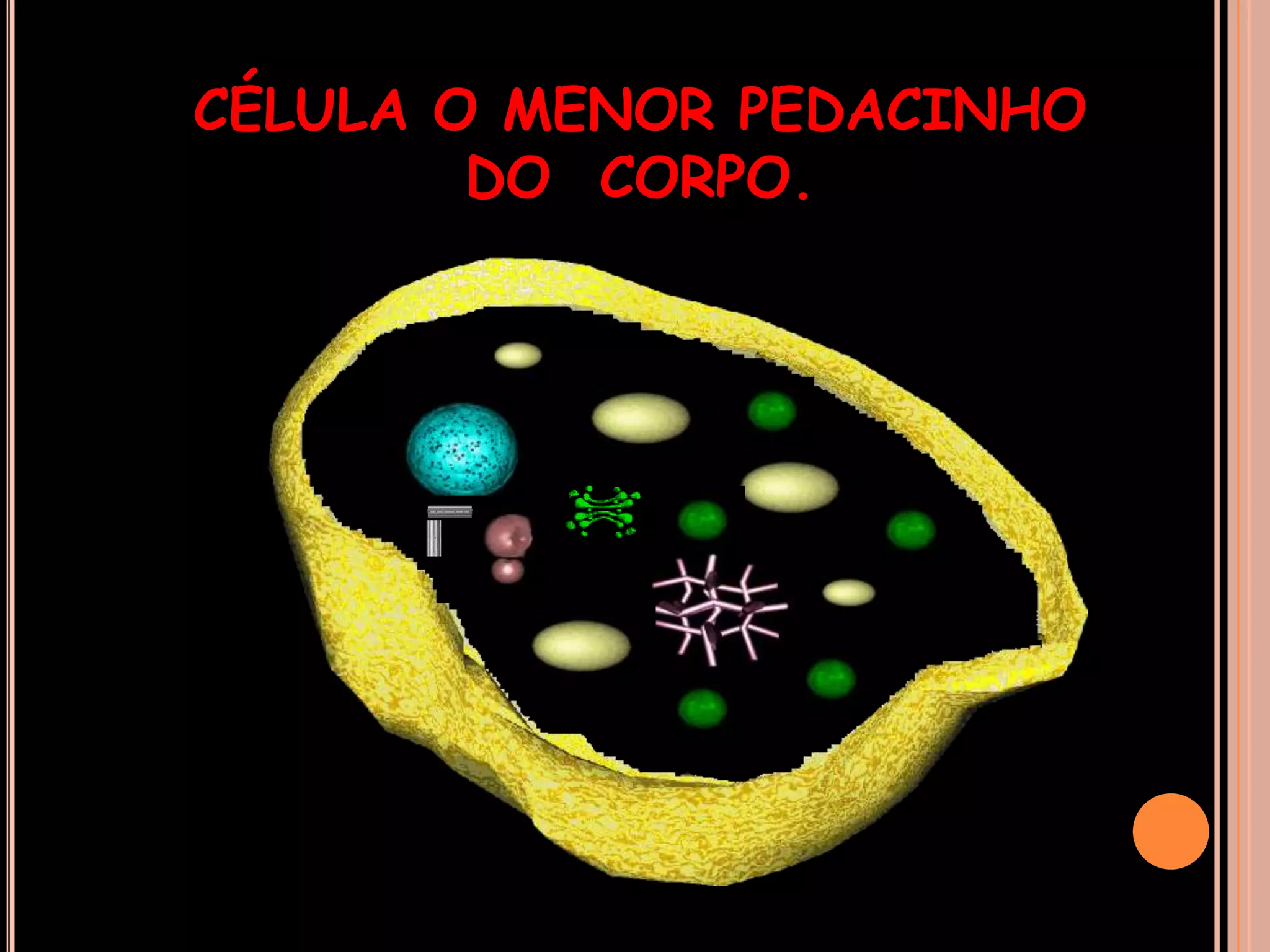 O documento descreve as partes básicas da célula e como elas formam os tecidos do corpo humano. Explica que as células são a menor unidade do corpo, contendo estruturas como núcleo, citoplasma e membrana. Detalha que as células animais e vegetais compartilham algumas partes, mas diferem em outras. Por fim, realiza um teste para revisar os conceitos apresentados.