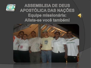 A Igreja Assembléia de Deus Apostólica das Nações está localizada no Pelourinho, em Salvador, Bahia. A igreja se compromete com a ação social, educação, saúde física e espiritual e missões. Ela busca parcerias para ajudar crianças, jovens e idosos e se envolve com assuntos socioculturais de forma equilibrada e centrada nos ensinamentos de Jesus Cristo.