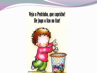 O documento propõe um projeto de limpeza de lixo no dia 20 de Março de 2010 envolvendo voluntários, incentivando as pessoas a não poluírem a natureza e participarem na limpeza levando equipamento de proteção como luvas e botas.