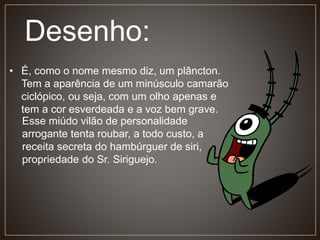 O documento discute o que é plâncton, incluindo que são organismos microscópicos que flutuam nos oceanos e mares com pouca capacidade de locomoção, servindo de base para a cadeia alimentar aquática. O documento também explica que o plâncton pode ser classificado em fitoplâncton, zooplâncton, bacterioplâncton e protozooplancton.