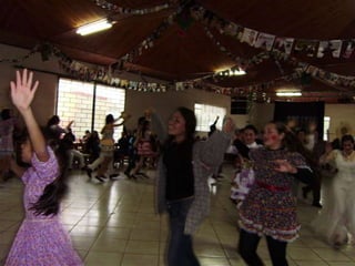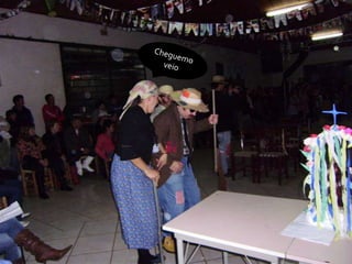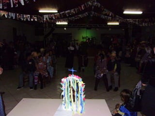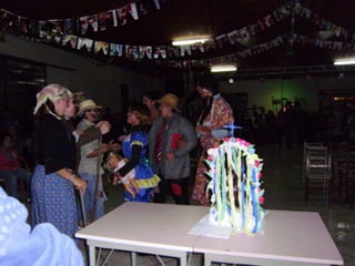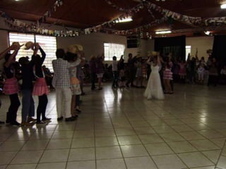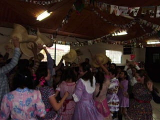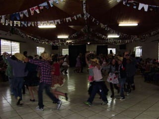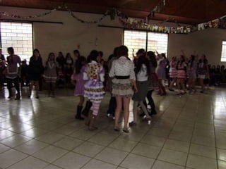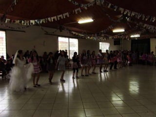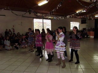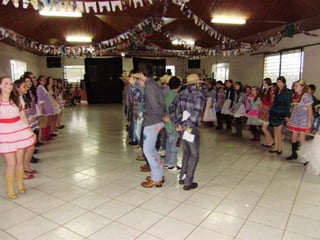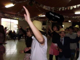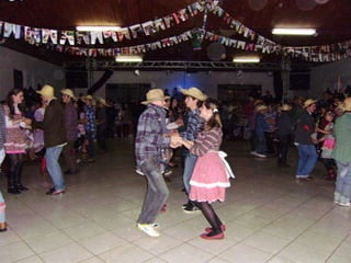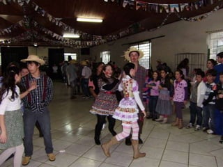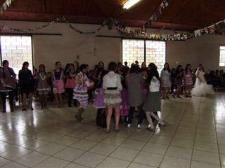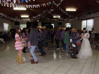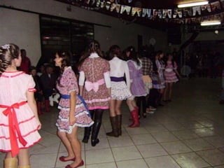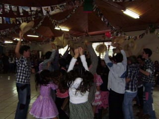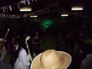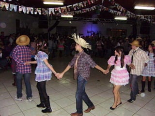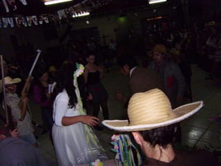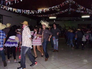 O documento descreve uma festa animada que continua até o amanhecer, mencionando itens como casamento caipira e ensino médio noturno. Há também menções de força e girar.