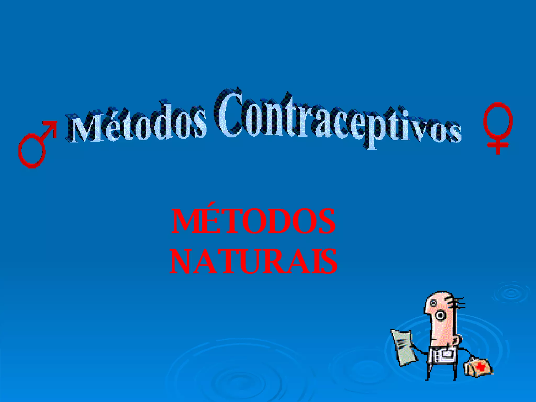 Este documento descreve os métodos contraceptivos naturais, incluindo a avaliação da temperatura, as características do muco cervical, a calendarização e o coito interrompido. Fornece detalhes sobre como cada método funciona e quando os períodos férteis ocorrem no ciclo menstrual feminino. Também discute as vantagens e desvantagens dos métodos naturais, incluindo taxas de falha relativamente altas.