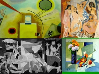 O documento discute vários artistas, estilos e técnicas de pintura, incluindo impressionismo, cubismo, expressionismo, pontilhismo, fauvismo, realismo e naturalismo. Também menciona artistas como Picasso, Van Gogh, Caravaggio, Portinari, Botero, Goya, Rembrandt, Tarsila do Amaral e Miró.