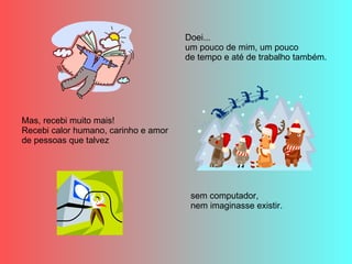 O autor aprendeu a amar e se conectar com pessoas através de uma tela, sem saber sobre características como cor, credo ou classe social. Apesar de inicialmente chamá-los de amigos virtuais, o autor percebeu que eles são tão reais quanto e recebeu deles calor humano, carinho e amor. O autor espera que o mundo aprenda a gostar das pessoas sem julgá-las por fatores externos.