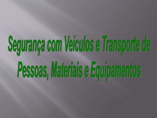 O documento discute os riscos associados ao transporte de trabalhadores e equipamentos em locais de trabalho, incluindo veículos e máquinas. Ele destaca a importância da qualificação dos operadores, manutenção dos equipamentos, sinalização de segurança e proteção contra partes móveis perigosas.