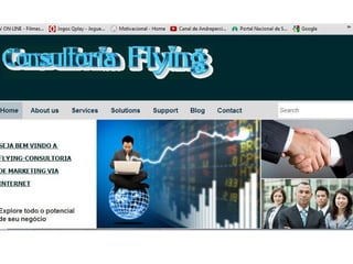 O documento discute os benefícios da publicidade para negócios, incluindo apresentações online, eventos e buscas de clientes. Também menciona a importância de se adaptar a publicidade para cada cliente e situação de forma a transformar visões e fazer as pessoas acreditarem no melhor. Fornece contatos de Skype, e-mail e MSN para mais informações.
