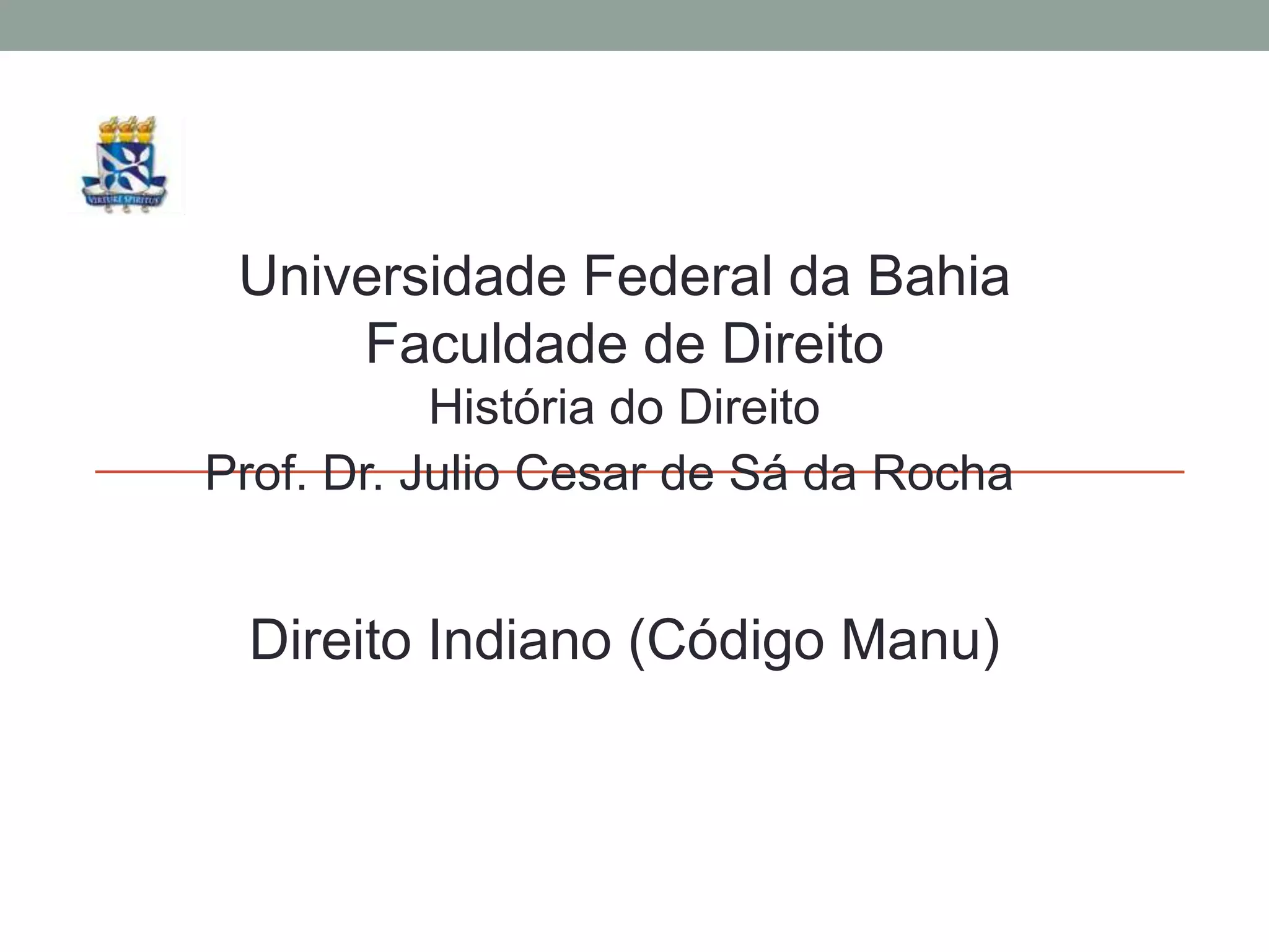 O documento descreve o direito indiano codificado no Código de Manu, incluindo a estrutura da sociedade em castas, os deveres e direitos de cada casta e as leis sobre casamento, herança e conduta. O Código de Manu privilegiava a casta brâmane e restringia os direitos das mulheres e castas inferiores.