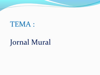 Este documento descreve um projeto de criação de um "Jornal Mural" na escola para desenvolver habilidades de leitura, escrita e pensamento crítico nos alunos. O projeto envolverá pesquisar notícias online, selecionar e reescrever artigos, diagramar o jornal e expô-lo na escola. As disciplinas de Língua Portuguesa e Artes serão usadas e os objetivos incluem formar leitores autônomos e despertar a criatividade dos alunos.
