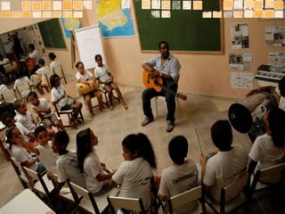 O documento descreve uma iniciativa de coordenação técnica que promove o encontro de saberes entre profissionais de diferentes áreas por meio de parcerias com escolas, universidades, museus e governos com foco na educação como prática, diálogo entre ação e reflexão e uma visão intercultural.