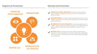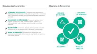O Design Thinking é um processo de resolução de problemas em 5 etapas: empatia, definição, ideação, prototipação e teste. O objetivo é encontrar soluções criativas para problemas de forma inovadora. A ferramenta Lego Serious Play usa blocos de Lego para facilitar a compreensão dos problemas durante o processo de design thinking.