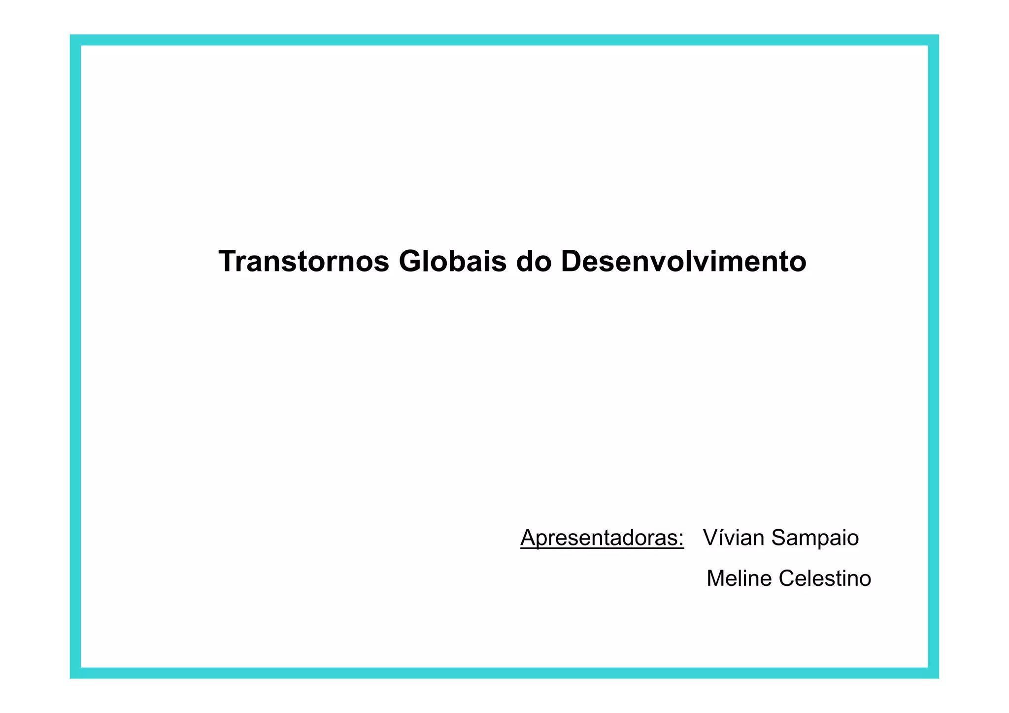 Os principais transtornos globais do desenvolvimento incluem o transtorno autista, transtorno de Rett, transtorno desintegrativo da infância, transtorno de Asperger e transtorno global do desenvolvimento sem outra especificação. Estes transtornos causam atrasos ou desvios no desenvolvimento de habilidades sociais, linguagem e comunicação. O transtorno autista ocorre antes dos 3 anos e é mais comum em meninos.