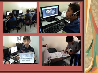 O documento descreve um curso sobre sustentabilidade que usa mídias educativas. O curso tem como objetivo desenvolver a consciência ecológica dos alunos por meio de atividades sobre sustentabilidade usando recursos tecnológicos. O curso inclui pesquisas, jogos, campanhas de reciclagem e dicas de atitudes sustentáveis. O resumo conclui que os objetivos foram alcançados e os alunos demonstraram atitudes conscientes sobre o meio ambiente.