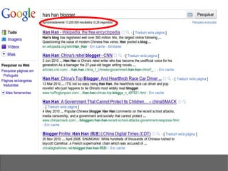 O documento discute a crítica cultural no jornalismo e na internet. Primeiro, questiona onde está a crítica cultural tradicional e como a reputação da crítica mudou com a internet. Segundo, fala sobre como a crítica online está cada vez mais sob controle, usando o exemplo de um blogueiro chinês. Terceiro, compara o papel dos blogueiros e editores de moda.