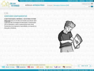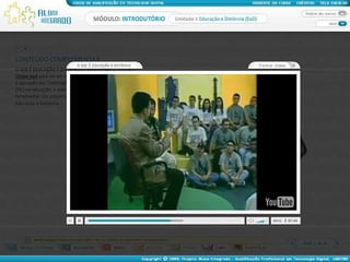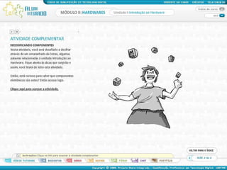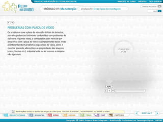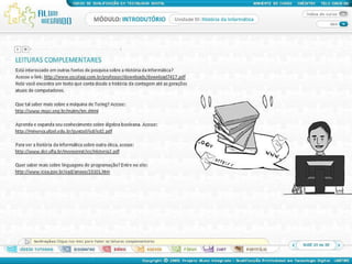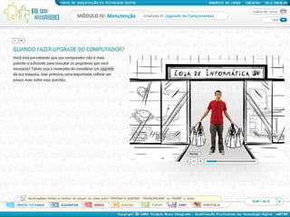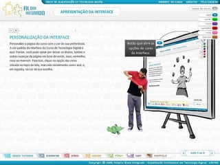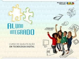 O documento descreve um curso para qualificar estudantes de escolas públicas em tecnologias da informação. O curso visa melhorar o aprendizado e desenvolvimento humano por meio das TIC, ensinando alunos a monitorar ambientes informatizados e auxiliar outros na aprendizagem. O curso é voltado para alunos a partir do oitavo ano e oferece certificado da UFG, beneficiando o currículo dos alunos.