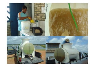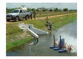 O documento fornece informações sobre produtos e serviços de consultoria em aquicultura oferecidos pela BIO AMBIENTAL AND PARTNERS. A empresa oferece suporte técnico e consultoria para produtores aquícolas usando produtos de qualidade e eficiência comprovadas. Os serviços incluem consultoria, suporte técnico e projetos técnicos, financeiros e ambientais.