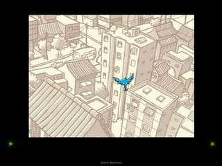 A poema descreve como uma aquarela pode ser usada para imaginar diferentes cenários e viagens através de desenhos simples, como o sol, castelo, guarda-chuva e gaivota. A poesia também fala sobre como a aquarela permite viajar para lugares como Havaí, Pequim e Istambul através da imaginação, além de criar cenas com barcos, aviões e circunavegação do mundo com um simples compasso.