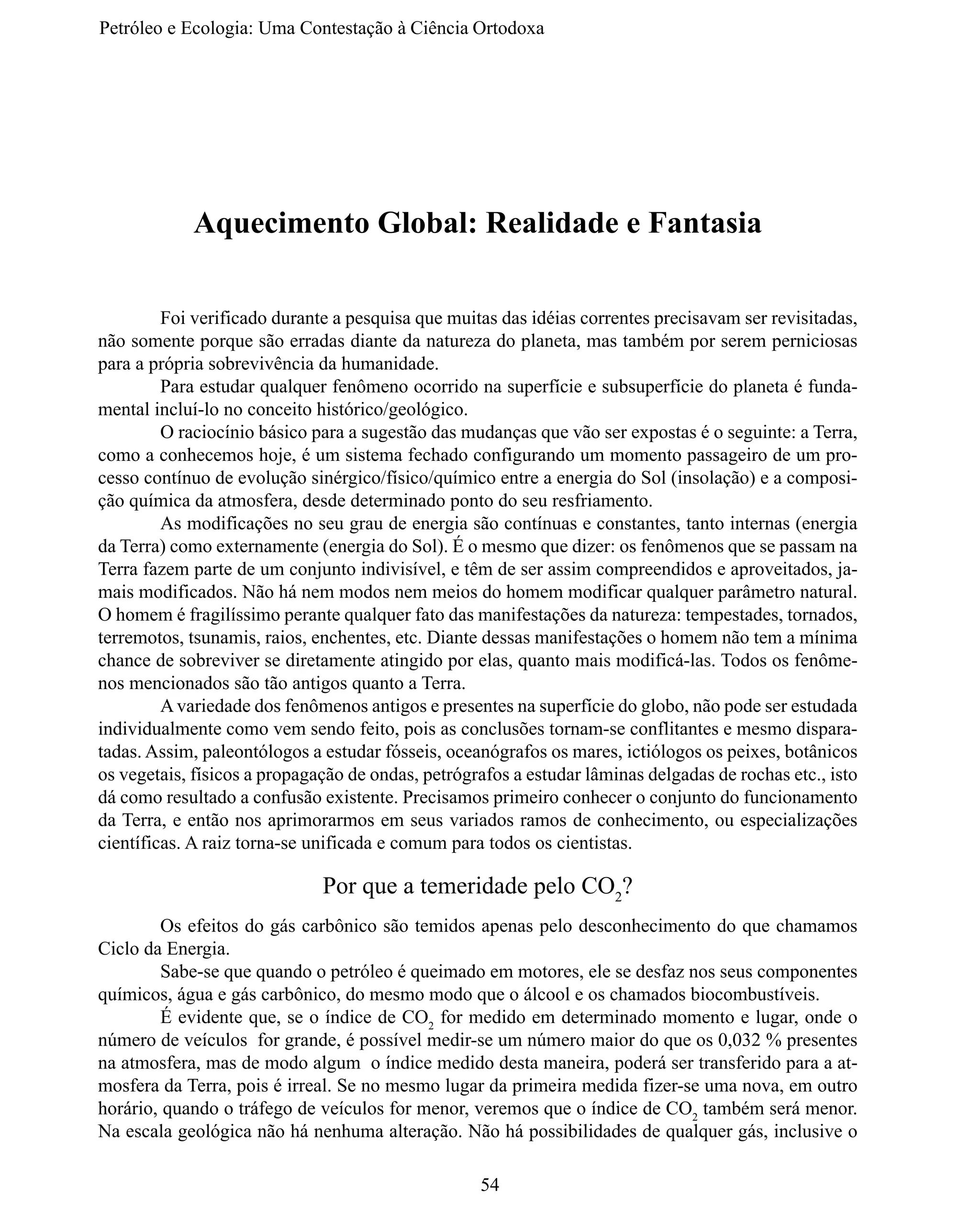 1) O documento contesta idéias ortodoxas sobre aquecimento global e defende que o CO2 na atmosfera está em níveis decrescentes e não é um problema.