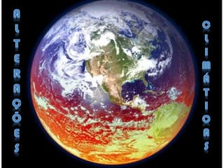O documento discute as mudanças climáticas e suas possíveis causas, que podem ser processos naturais ou resultado da atividade humana, em escalas de tempo que variam de décadas a milhões de anos.
