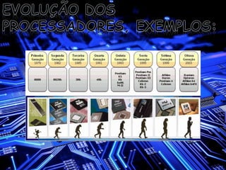 O documento descreve os principais componentes de um computador, incluindo processador, placa-mãe, placas de som, vídeo, rede e memória RAM e ROM. Detalha o que cada componente faz e como permite a comunicação entre os dispositivos dentro do computador.