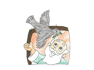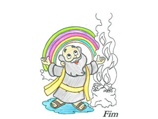 Deus ordenou a Noé que construísse uma arca para salvar sua família e os animais de uma grande enchente, após ver que os humanos se afastaram do caminho do bem. Noé construiu a arca e salvou sua família e os animais durante quarenta dias de chuva intensa. Após a água baixar, eles saíram em segurança e Deus colocou um arco-íris como sinal de sua aliança com a humanidade.