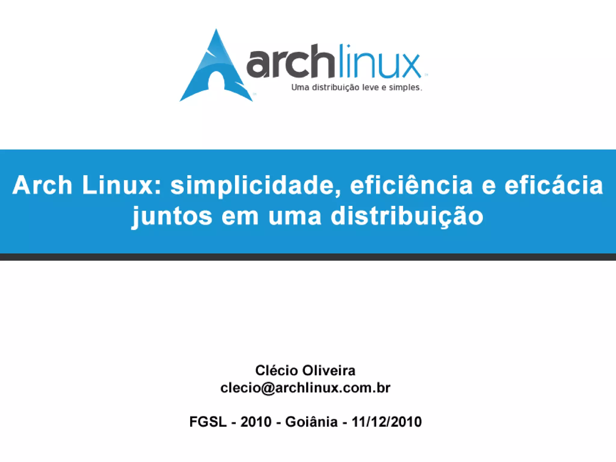 O documento apresenta uma visão abrangente sobre o Arch Linux, destacando sua história, características, pontos fortes e fracos, além de comparações com outras distribuições. Arch Linux é uma distribuição minimalista com foco em usuários avançados, oferecendo um sistema de gerenciamento de pacotes robusto e um modelo de lançamento rolling release. A comunidade brasileira do Arch Linux é ativa e disponível para suporte, conta com diversas ferramentas e recursos acessíveis aos usuários.