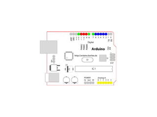O documento apresenta uma introdução ao uso do Arduino, destacando suas especificações técnicas e a programação em C/C++ para integração com Python. São discutidos exemplos de aplicações práticas, incluindo o uso de HTML, CSS e JavaScript para construir interfaces web. Além disso, menciona eventos e recursos para aprendizado e compartilhamento de conhecimento na área de eletrônica e programação com Arduino.