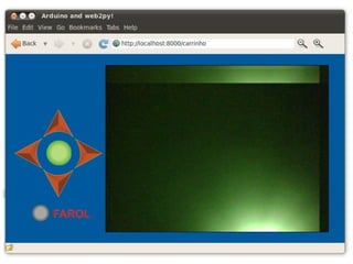 O documento apresenta Arduino, uma plataforma de hardware e software open-source popular para prototipagem eletrônica. Detalha as especificações técnicas do Arduino Duemilanove e Nano, incluindo o microcontrolador ATMega328, memória, entrada e saída digital e analógica. Também menciona recursos como PWM, timers e controle USB.