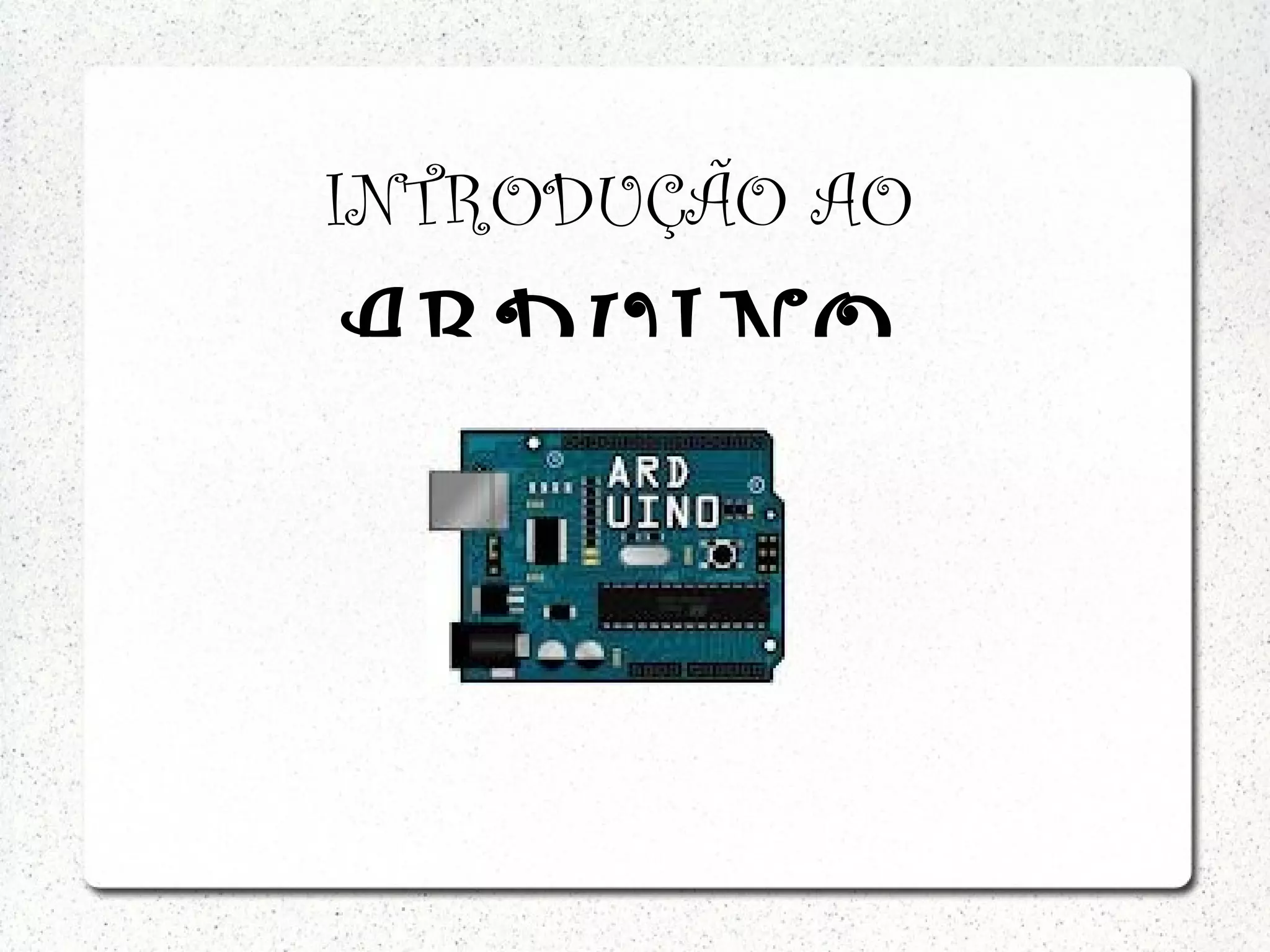 A apresentação introduz o Arduino, uma plataforma open source de hardware e software que permite a computação física através de microcontroladores de baixo custo. O Arduino possui portas digitais e analógicas I/O, alimentação de 5V e é compatível com uma variedade de sensores e placas de expansão. A comunidade do Arduino é grande e ativa, e o projeto tem como objetivo tornar a eletrônica e programação acessíveis.