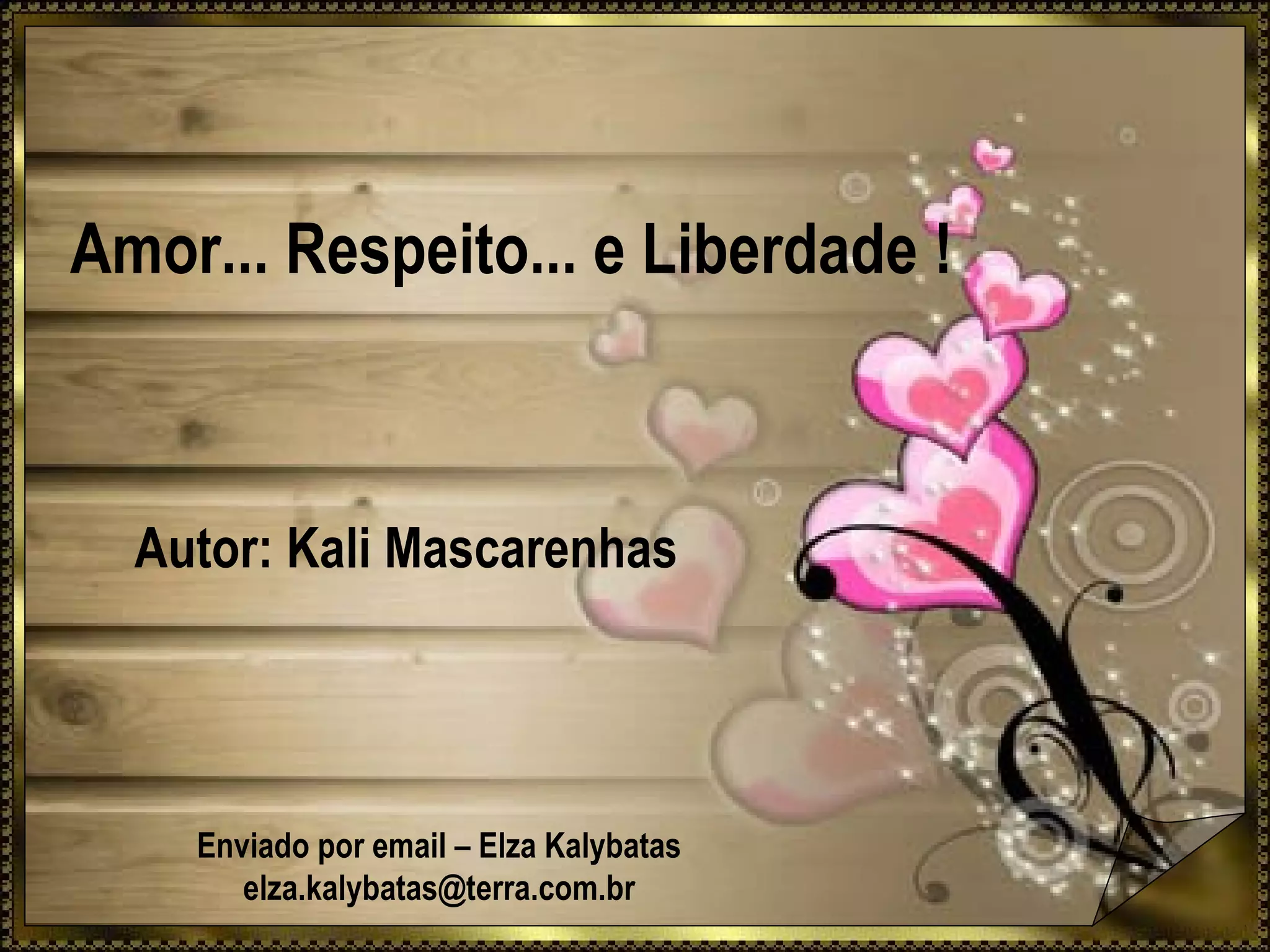 O documento discute os temas do amor, respeito e liberdade nas relações. Ele enfatiza que cada um é dono de suas próprias emoções e ações e não pode controlar a vida dos outros. Defende que o amor deve ser vivido com respeito à individualidade de cada um e liberdade para ser quem se é.