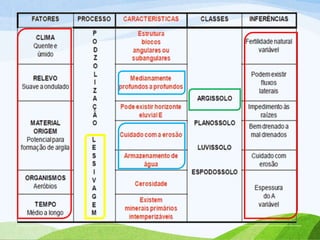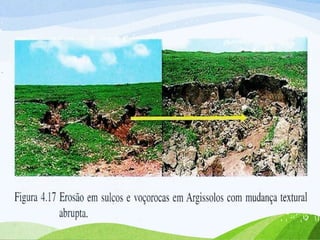 Este documento descreve os Argissolos, um tipo de solo encontrado no Rio Grande do Sul. Argissolos são solos com um horizonte B textural com alta argilidade ou saturação por bases baixa. O documento explica as características, formação, localização e subclasses dos Argissolos, incluindo Argissolos Vermelhos, Vermelho-Amarelos e Brunos-Acinzentados.