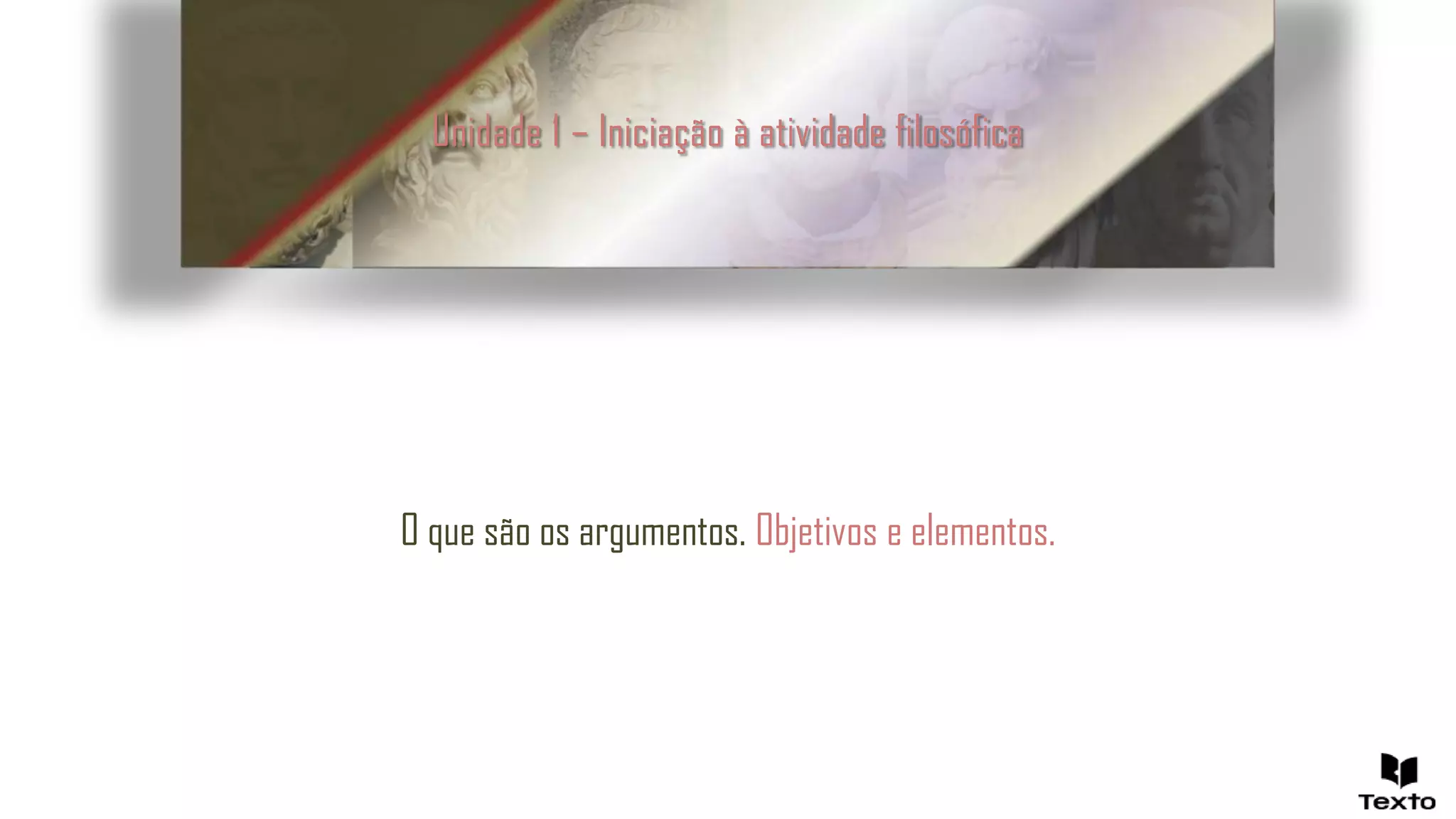 Este documento discute os elementos e objetivos dos argumentos filosóficos. Explica que os argumentos servem para justificar afirmações através de premissas, e que um argumento é válido quando a verdade das premissas garante a conclusão, mesmo que as premissas sejam falsas. Argumentos inválidos têm conclusões que podem ser falsas mesmo com premissas verdadeiras.