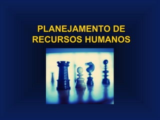 O documento discute o planejamento de recursos humanos (PRH), definindo-o como o processo de identificar e analisar as necessidades atuais e futuras de capital humano da organização. O PRH permite que a empresa desenvolva planos para satisfazer essas necessidades por meio de políticas, programas e atividades. O objetivo final é assegurar a continuidade das operações da empresa, mesmo em condições de mudança e crescimento.