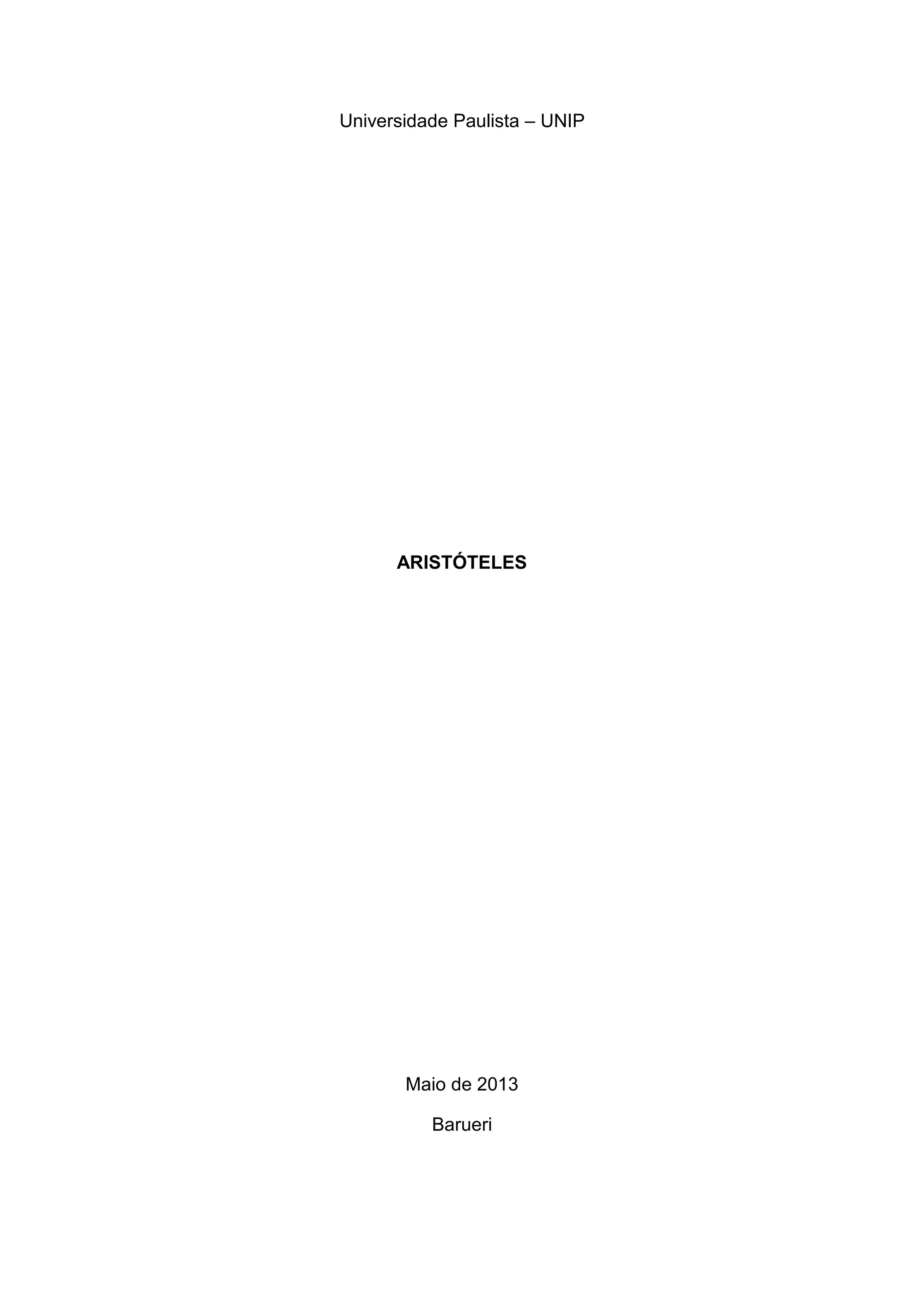 Este documento resume a biografia e as principais ideias filosóficas de Aristóteles. Inclui detalhes sobre sua vida, educação na Academia de Platão, fundação do Liceu e principais teorias sobre metafísica, causas, substância, potência e ato. Aborda também suas ideias sobre religião, arte, política, ética e tipos de governo.