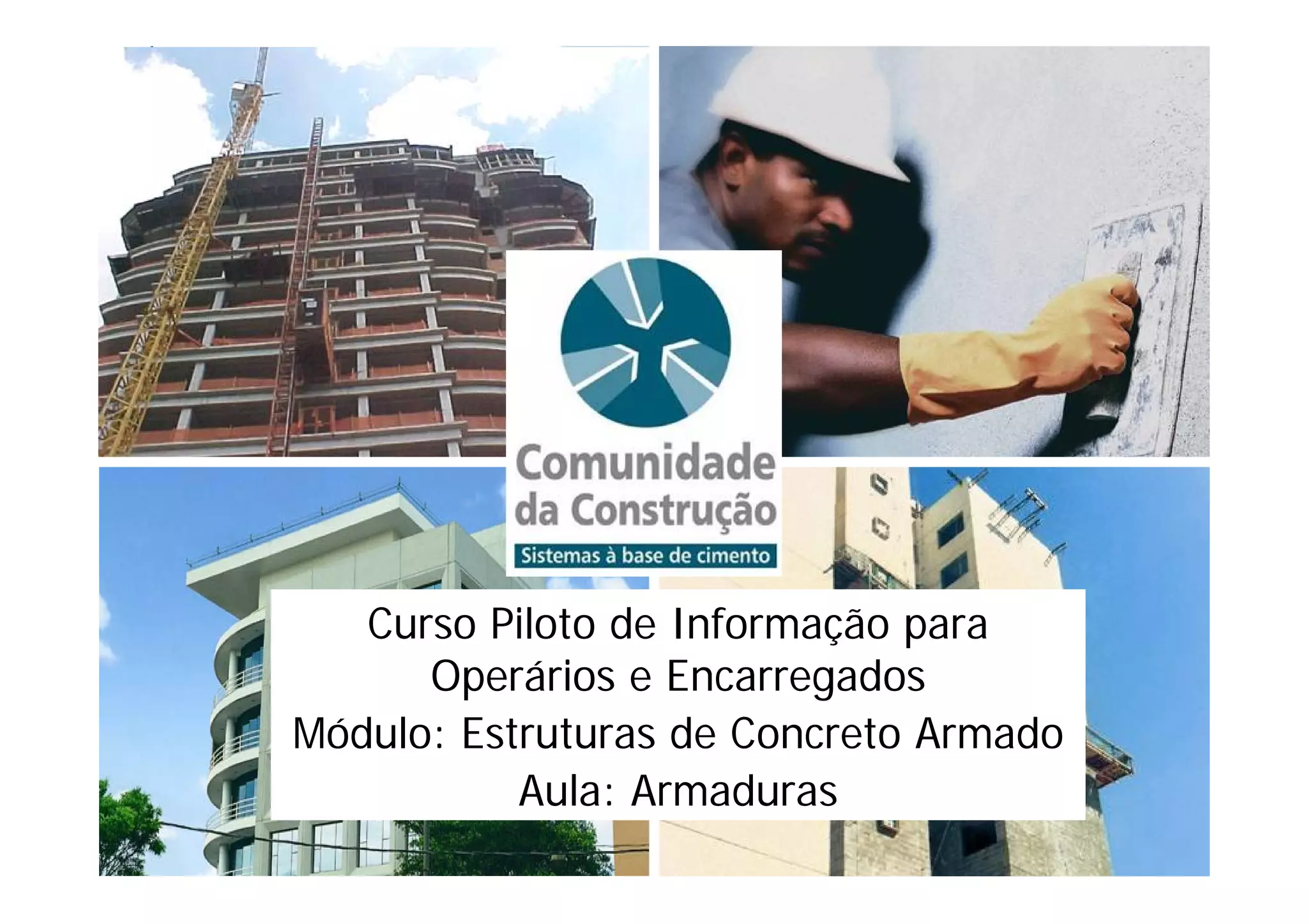 O documento descreve os processos de fabricação e aplicações de armaduras de aço para concreto. Detalha os tipos de aço, como CA 25, CA 50 e CA 60, e suas classes de resistência mecânica. Também explica os procedimentos de montagem e instalação das armaduras, incluindo posicionamento, emendas e ancoragens para garantir a transferência adequada de esforços ao concreto.