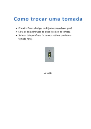 Desligue os disjuntores, solte os parafusos da placa e da tomada antiga e instale a nova tomada parafusando-a no lugar da antiga.