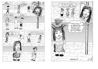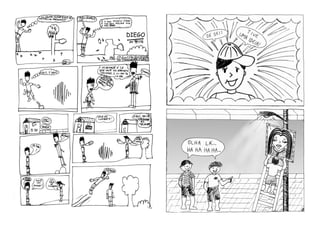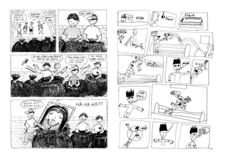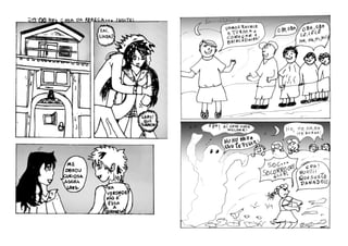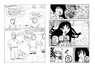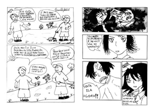 O documento descreve um projeto de oficinas de quadrinhos realizado em bibliotecas públicas de São Paulo que incentiva e apoia novos autores. O resultado foi um fanzine com histórias criadas por participantes das oficinas sobre temas como armas, guerra, personagens de rock e mistérios de uma cidade. O fanzine faz parte de um projeto premiado que contribui para a nona arte no Brasil.